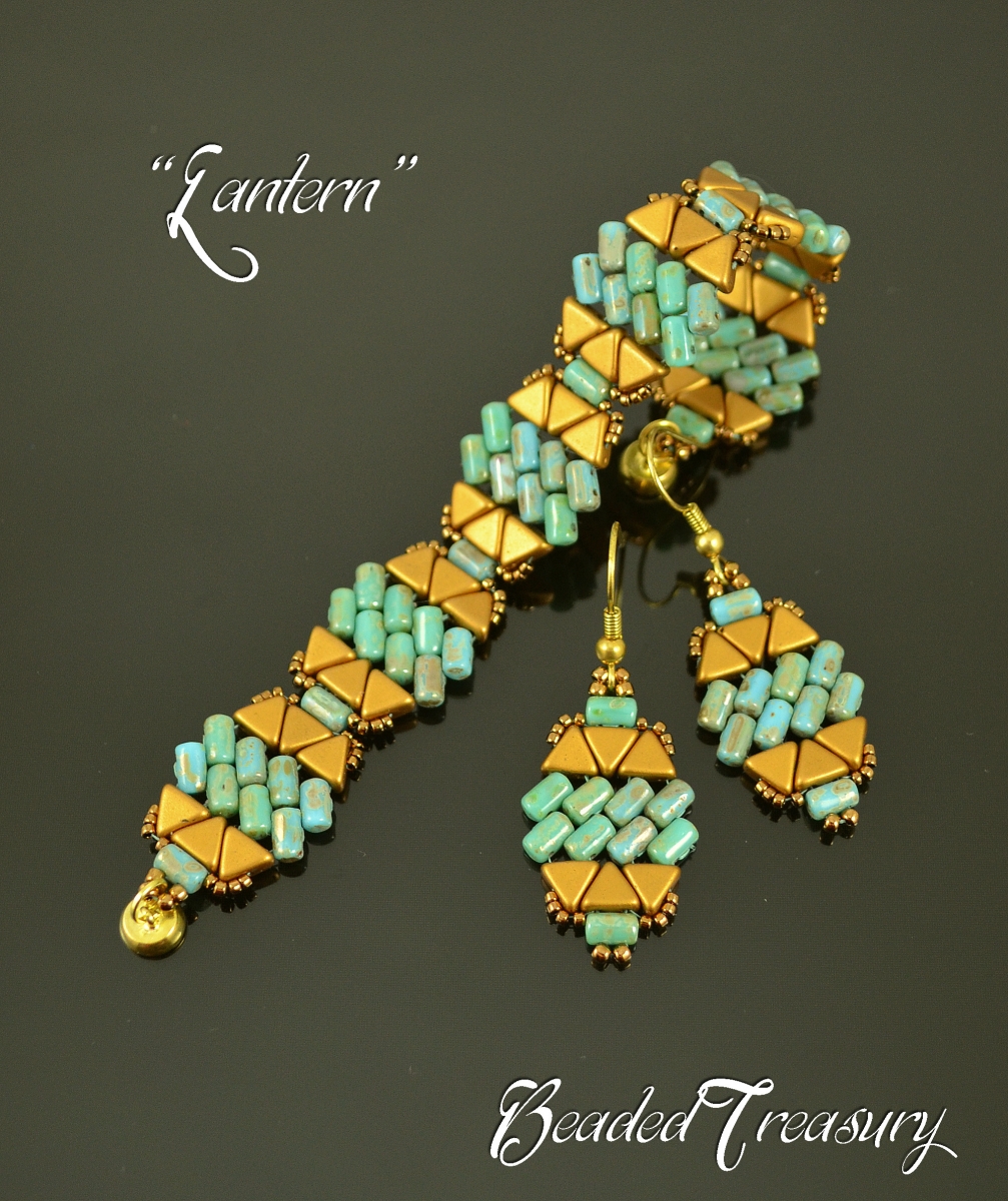 I uploaded a new beading tutorial in my shop. Made the sample for this design the last summer but never got the chance to turn it into a finished piece of jewelry until now. I initially thought of making the bracelet only, but then the earrigns somehow made themselves and I ended up with this beautiful set of beaded jewelry.