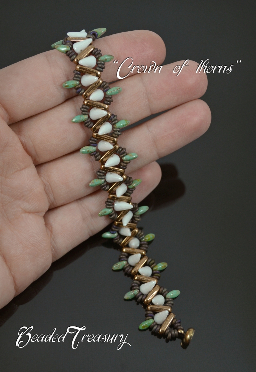 "Crown of Thorns" is not my first play with Beam beads, but it is surely the first one published on my website. Beams, Spikes, Daggers and Demi Rounds worked great together in this easy to make design. I made the bracelet in two color combinations.