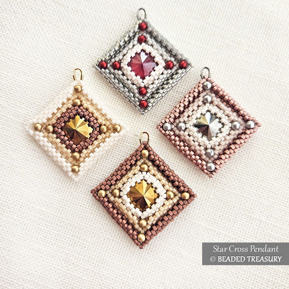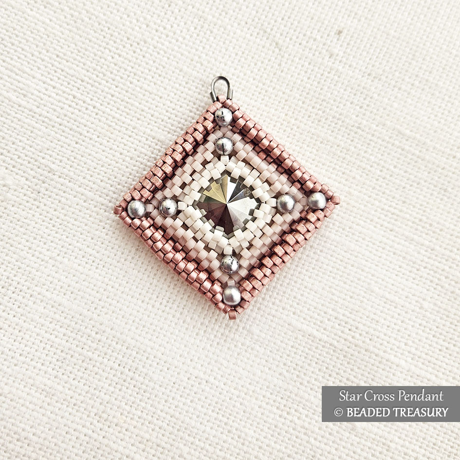 The original Star Cross Pendant design is made in a white rose gold colorway using a reversed gradient. This technique resulted in the creation of two pendants that look so different although the same set of beads were used to make them!