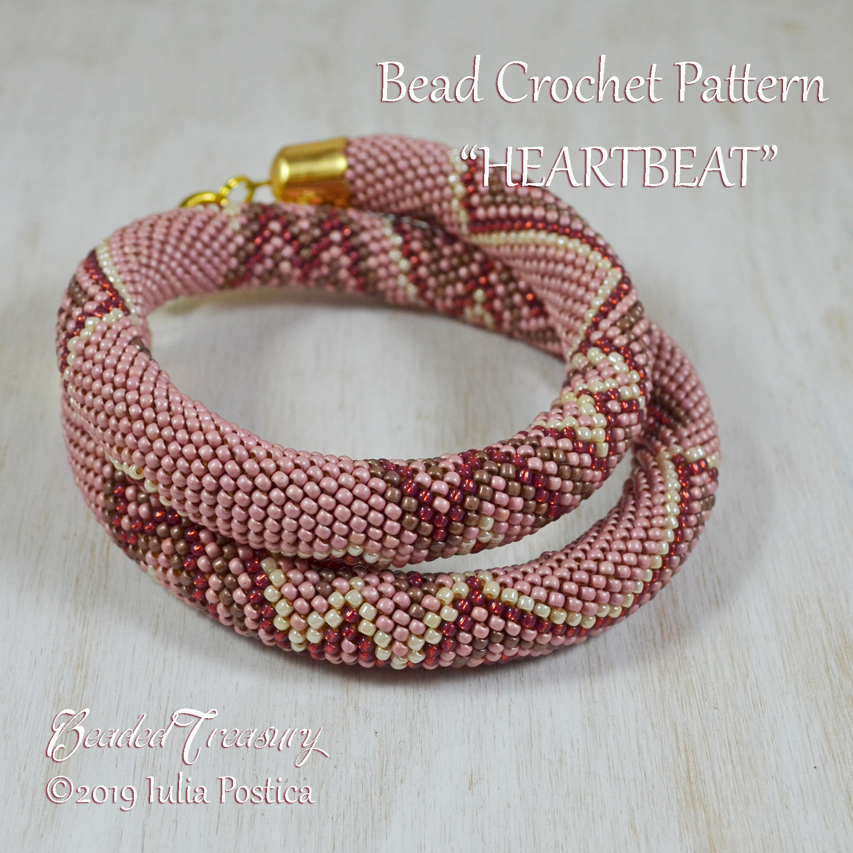 HEARTBEAT Bead Crochet Pattern made into a beautiful necklace in pale pink / garnet / marsala shades. A matching beaded bracelet can be done as well using this pattern.